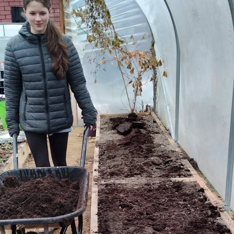 We cleared out the polytunnel, made new labels for the plants still growing and filled the beds.