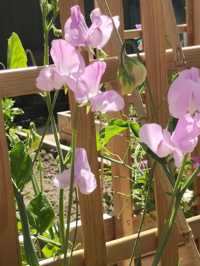 Along with enjoying the sweet pea flowers and eating the peas straight from their pods.